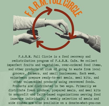 At the intersection of food security and sustainability, F.A.R.M. Cafe aims to work towards and equitable food system while preserving resources for future generations.