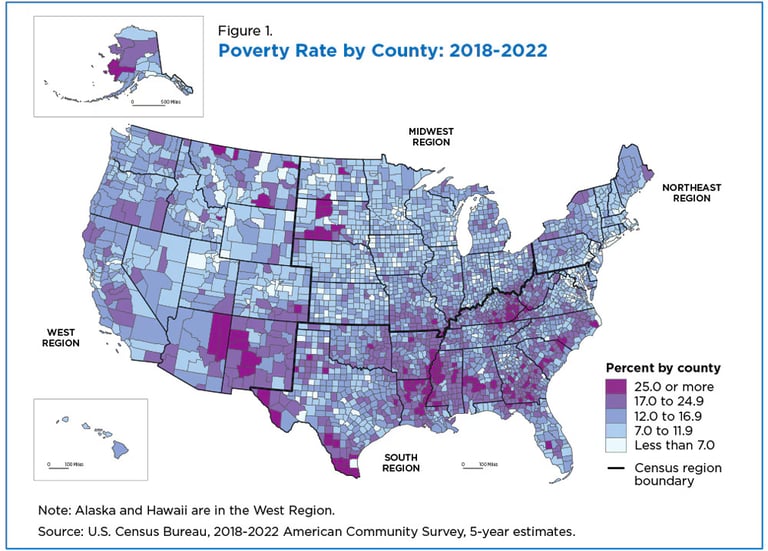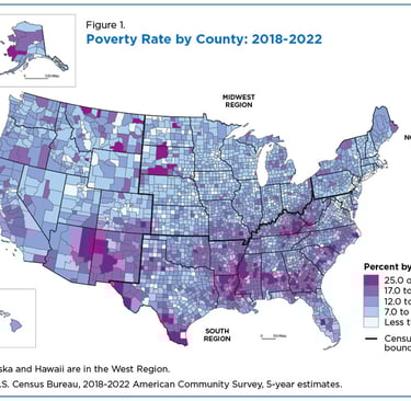 Benson, Craig. “More than One-Third of U.S. Counties Had Declining Poverty Rates in 2018-2022.” Census.gov, December 21, 2023. https://www.census.gov/library/stories/2023/12/poverty-rates-by-county.html.